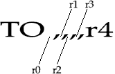 As for most SWI calls, not all 12 registers are used for data in or data out, the format is truncated to just using the registers required. The TO indicated that values are returned from the called to module. Again, if you're only interested in (say) r4, the SWI past the TO can be truncated to look like this :